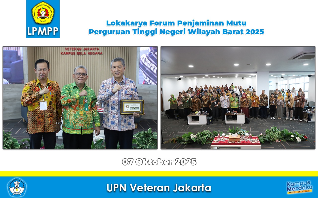 Jakarta, 07 November 2025 – Universitas Pembangunan Nasional “Veteran” Jakarta melalui Lembaga Pengembangan Mutu dan Penjaminan Pendidikan (LPMPP) menjadi tuan rumah pelaksanaan Lokakarya Permendiktisaintek Nomor 39 Tahun 2025 tentang Penjaminan Mutu Pendidikan Tinggi dan Diseminasi Praktik Baik Sistem Penjaminan Mutu Internal (SPMI). Kegiatan yang berlangsung pada Jum’at, 7 November 2025 ini menghadirkan para pengelola penjaminan mutu dari Perguruan Tinggi Negeri yang tergabung dalam Forum Penjaminan Mutu (FPM) BKS PTN Wilayah Barat. Rundown Lokakarya FPM BKS PTN