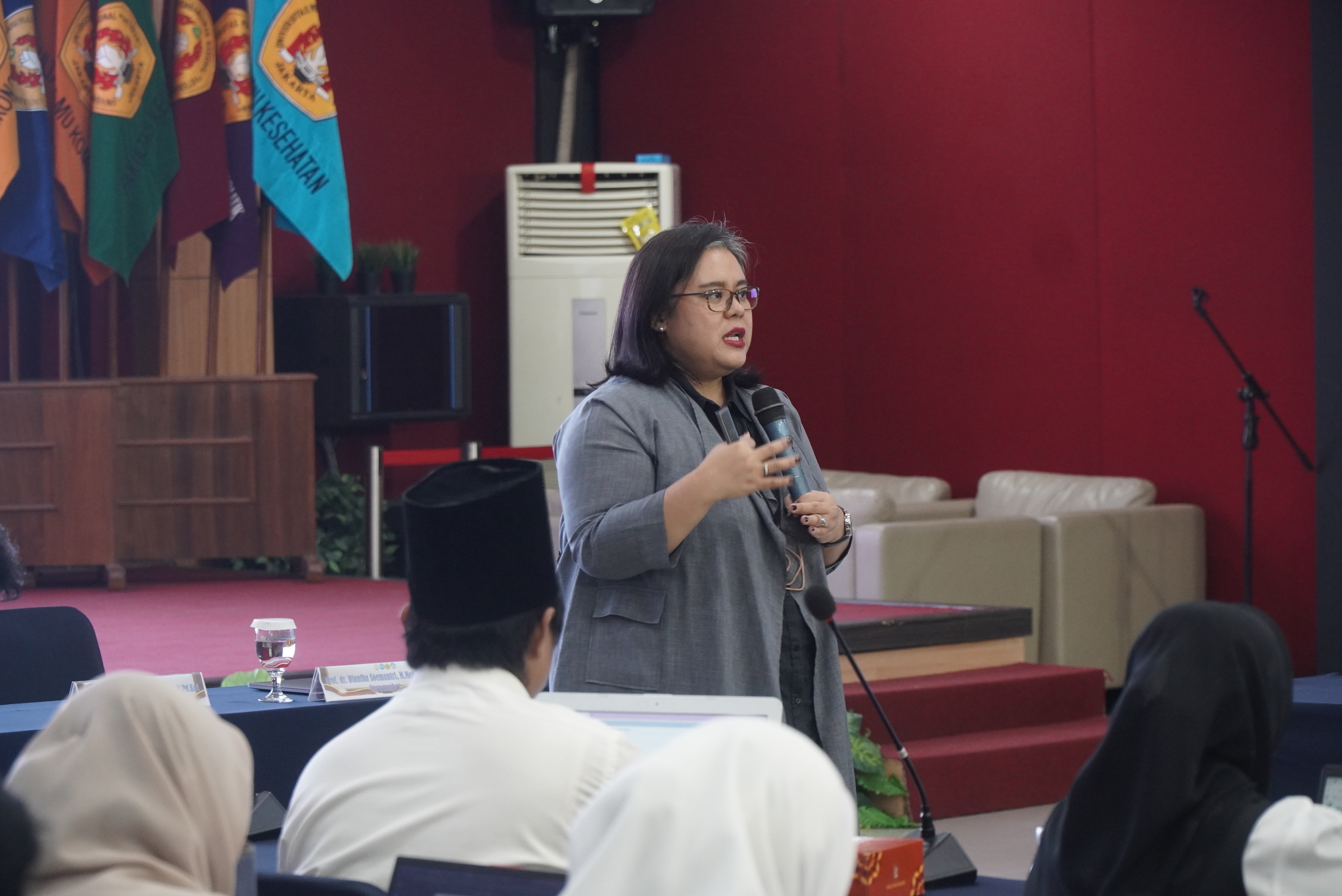 Kegiatan kemudian dilanjutkan dengan penyampaian materi oleh narasumber Prof. Diantha Soemantri, M.Med.Ed., Ph.D., yang memaparkan materi bertajuk “Assessment in Higher Education”. Dalam pemaparannya, Prof. Diantha menjelaskan konsep, prinsip, dan praktik asesmen yang efektif di pendidikan tinggi, termasuk peran rubrik evaluasi dan penyusunan soal asesmen dalam mengukur capaian pembelajaran secara komprehensif dan berkelanjutan.