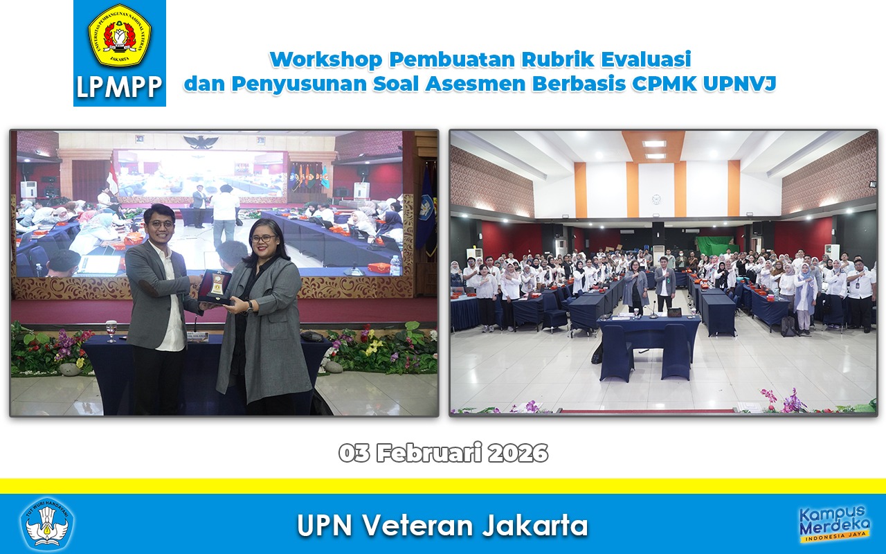Jakarta – Universitas Pembangunan Nasional “Veteran” Jakarta (UPNVJ) melalui Lembaga Penjaminan Mutu dan Pengembangan Pembelajaran (LPMPP) menyelenggarakan kegiatan Pembuatan Rubrik Evaluasi dan Penyusunan Soal Asesmen Berbasis Capaian Pembelajaran Mata Kuliah (CPMK). Kegiatan ini dihadiri oleh para Wakil Dekan Bidang Akademik, Kepala Program Studi, Gugus Kendali Mutu (GKM), serta perwakilan dosen di lingkungan UPNVJ.