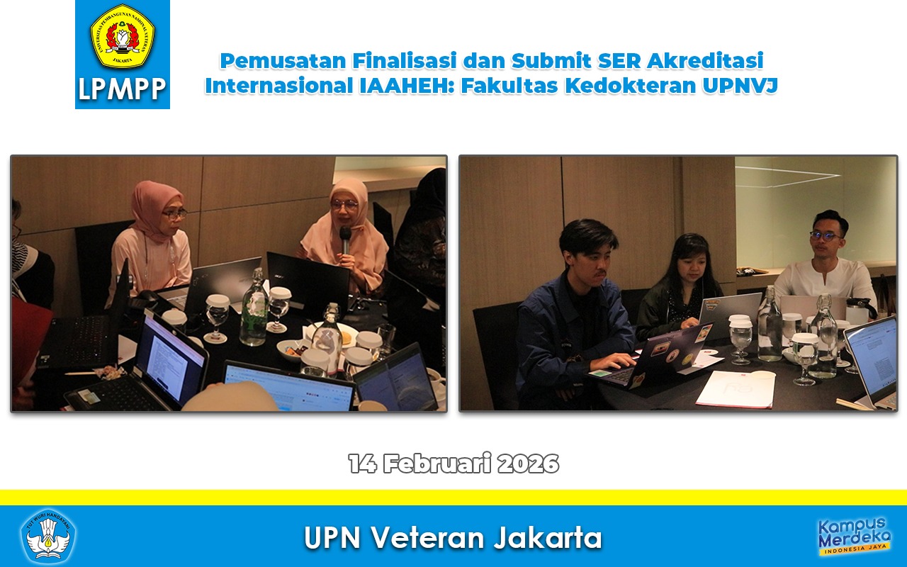 Universitas Pembangunan Nasional “Veteran” Jakarta (UPNVJ) melalui Lembaga Pengembangan Pembelajaran dan Penjaminan Mutu Pendidikan (LPMPP) bersama Fakultas Kedokteran (FK) kembali menyelenggarakan Fullboard Meeting hari kedua terkait Finalisasi Akreditasi Internasional Indonesian Accreditation Agency For Higher Education In Health (IAAHEH) pada Jumat, 14 Februari 2026. Kegiatan bertempat di Ra Suites Simatupan dan difokuskan pada sinkronisasi dan validasi data kuantitatif serta penguatan substansi akademik dalam dokumen SER akreditasi internasional IAAHEH.