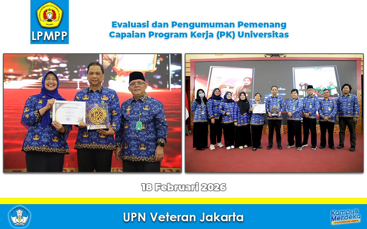 Jakarta – Universitas Pembangunan Nasional “Veteran” Jakarta (UPNVJ) menyelenggarakan kegiatan Evaluasi dan Pengumuman Pemenang Program Kerja (PK) Tahun 2025 sebagai bagian dari komitmen institusi dalam memperkuat tata kelola dan budaya kinerja berbasis capaian. Kegiatan ini menjadi momentum refleksi atas pelaksanaan program kerja seluruh unit di lingkungan UPNVJ selama tahun 2025.