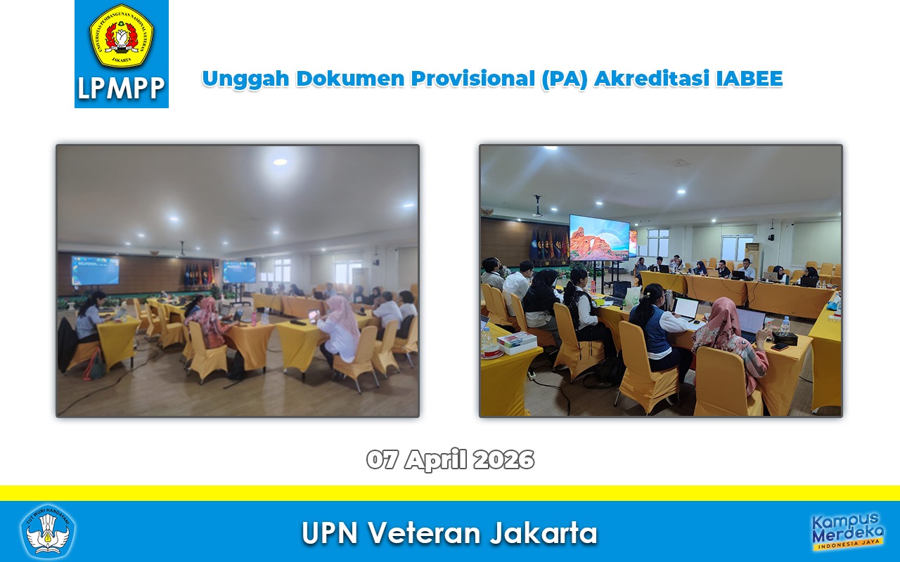 Depok, 07 April 2026 – Lembaga Penjaminan Mutu dan Pengembangan Pembelajaran Universitas Pembangunan Nasional “Veteran” Jakarta (UPNVJ) menyelenggarakan kegiatan Pemusatan Koordinasi Unggah Dokumen Provisional Accreditation Indonesian Accreditation Board for Engineering Education (PA IABEE) pada Selasa, 7 April 2026, bertempat di Aula Tanah Airku, Fakultas Teknik, Kampus UPN “Veteran” Jakarta Limo. Kegiatan ini merupakan bagian dari komitmen institusi dalam meningkatkan mutu pendidikan serta memastikan kesiapan program studi dalam proses pengajuan akreditasi internasional oleh Indonesian Accreditation Board for Engineering Education (IABEE).