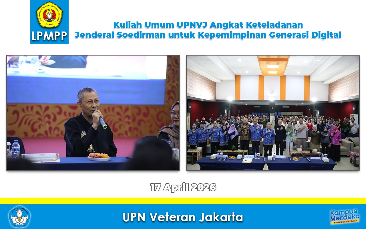 Jakarta – Pusat Mata Kuliah Wajib Kurikulum (MKWK) di bawah Lembaga Penjaminan Mutu dan Pengembangan Pembelajaran (LPMPP) Universitas Pembangunan Nasional “Veteran” Jakarta (UPNVJ) menyelenggarakan kegiatan kuliah umum bertajuk “Meneladani Kepemimpinan Jenderal Soedirman di Era Generasi Digital” pada Jumat, 17 April 2026 di Ruang Bhineka Tunggal Ika.