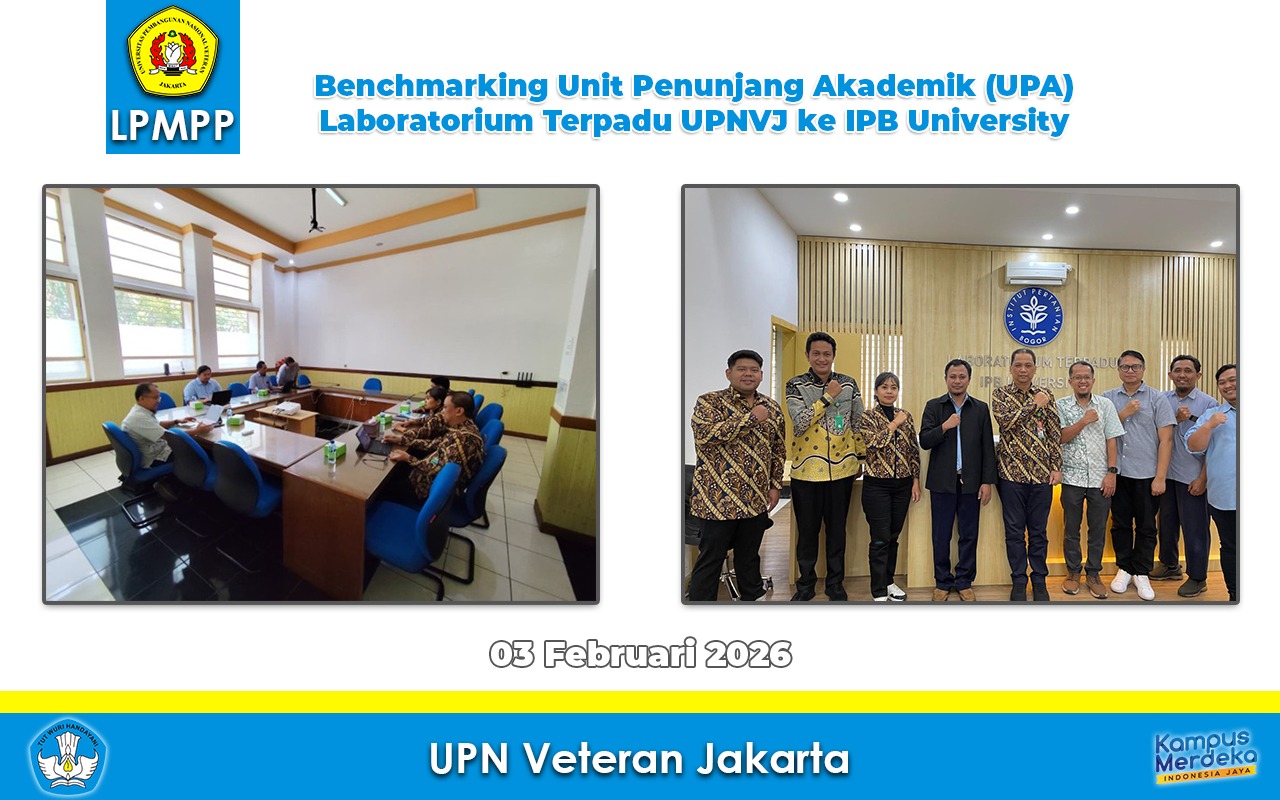 Bogor, 3 Februari 2026. Lembaga Pengembangan Pembelajaran dan Penjaminan Mutu (LPMPP) bersama Unit Pelaksana Akademik (UPA) Laboratorium Terpadu Universitas Pembangunan Nasional Veteran Jakarta (UPNVJ) melaksanakan kegiatan benchmarking ke Unit...