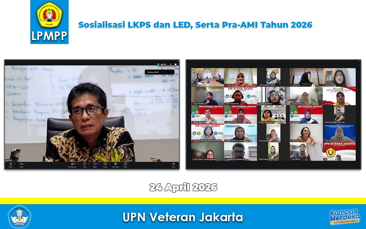 Jumat, 24 April 2026, Lembaga Penjaminan Mutu dan Pengembangan Pembelajaran (LPMPP) Universitas Pembangunan Nasional “Veteran” Jakarta (UPNVJ) menyelenggarakan kegiatan Sosialisasi LKPS, LED, dan Pelaksanaan Audit Mutu Internal (AMI) Tahun...