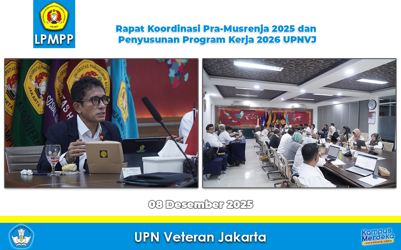 Senin, 8 Desember 2025 — Universitas Pembangunan Nasional “Veteran” Jakarta (UPNVJ) menggelar Rapat Koordinasi Pra Musyawarah Rencana Kerja (Pra-Musrenja) 2025 sekaligus penyusunan Program Kerja tahun 2026. Kegiatan yang dilaksanakan...