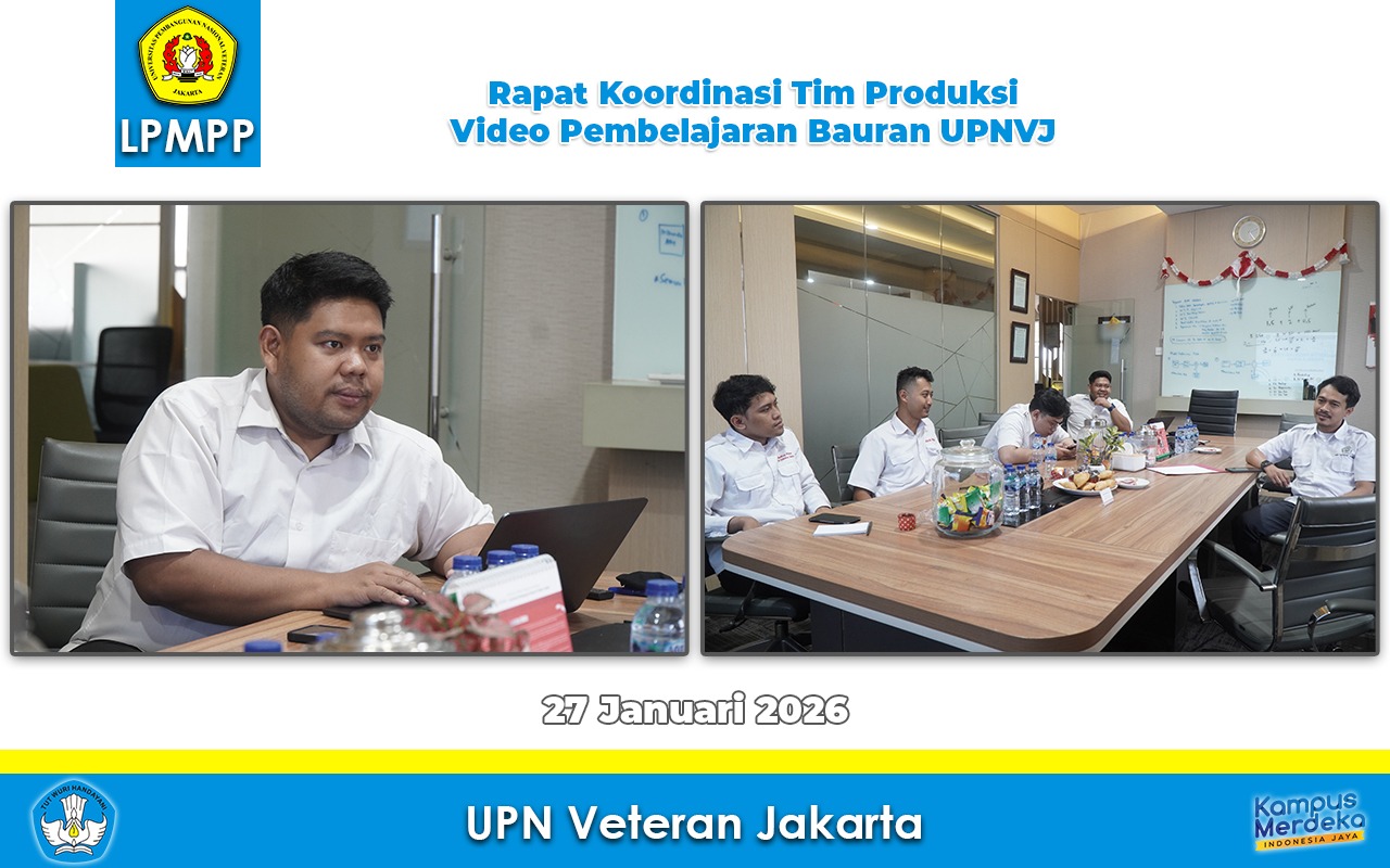 Jakarta – Setelah pelaksanaan istirahat, sholat, dan makan (ishoma), Tim Produksi Video Pembelajaran Bauran Universitas Pembangunan Nasional “Veteran” Jakarta (UPNVJ) melaksanakan rapat koordinasi pada 27 Januari 2026. Kegiatan ini...