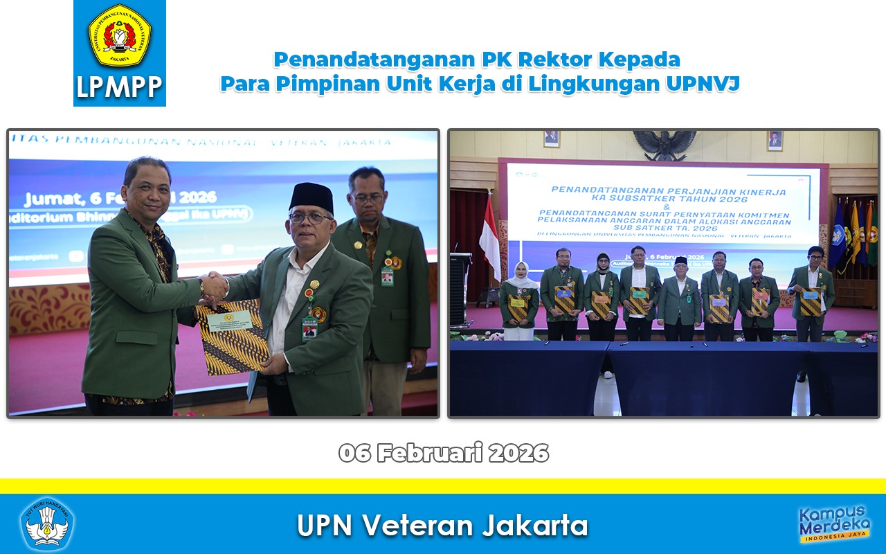 Jakarta — Lembaga Penjaminan Mutu dan Pengembangan Pembelajaran (LPMPP) Universitas Pembangunan Nasional “Veteran” Jakarta (UPNVJ) menyelenggarakan Rapat Penjaminan Mutu Tahunan Tahun 2026 pada Senin, 9 Februari 2026. Kegiatan ini...